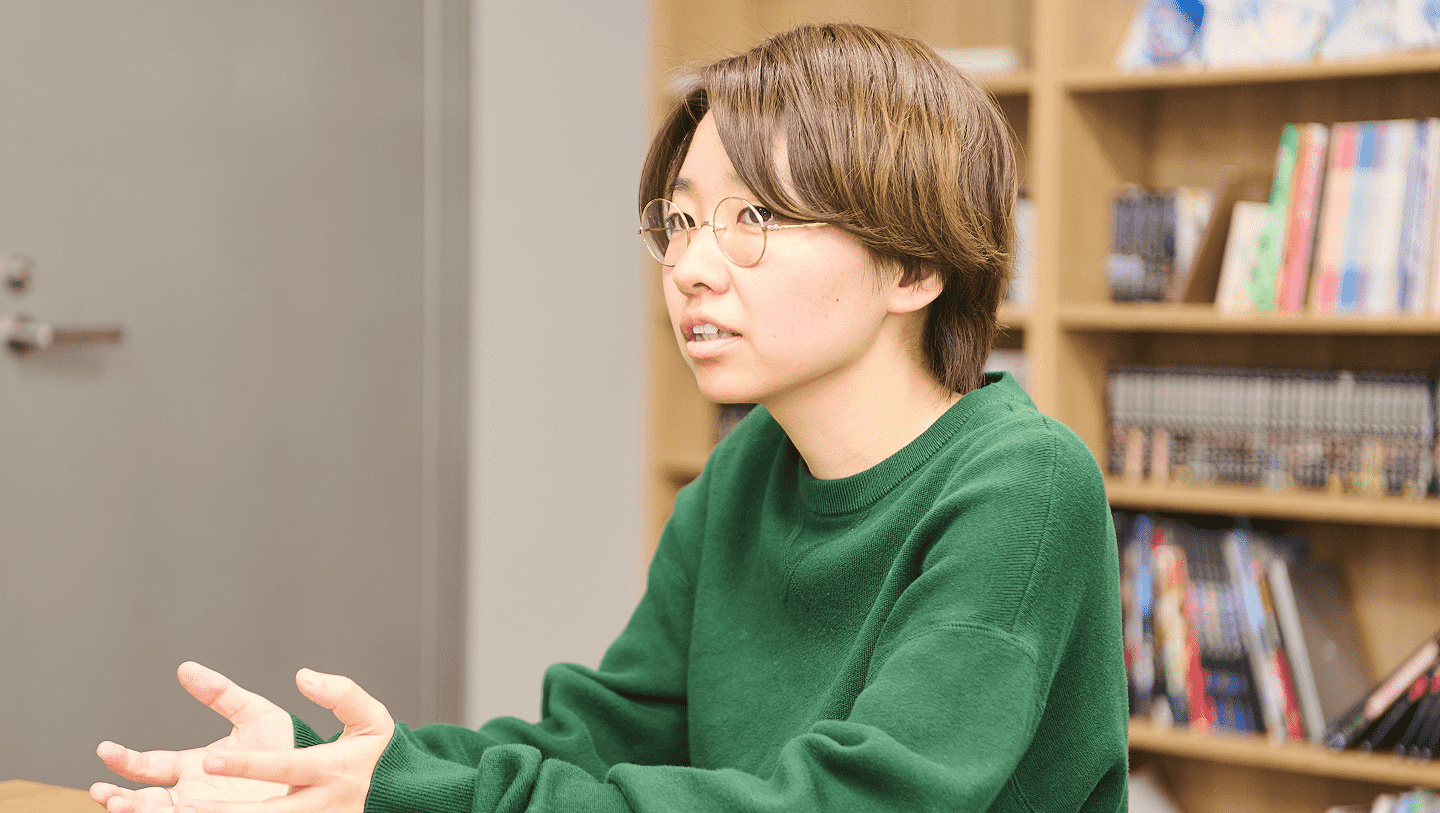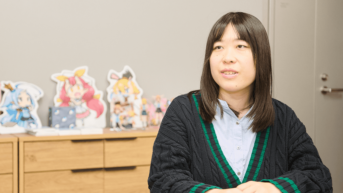 私は、実写の映像制作やマンガ・アニメなどのエンタメが好きでした。一般企業に就職するビジョンが見えず、でも働かないといけないとなった時にできれば自分の好きな仕事がしたいと選んだのがアニメ業界で、元々色彩には興味があったので仕上げ職を選択しました。