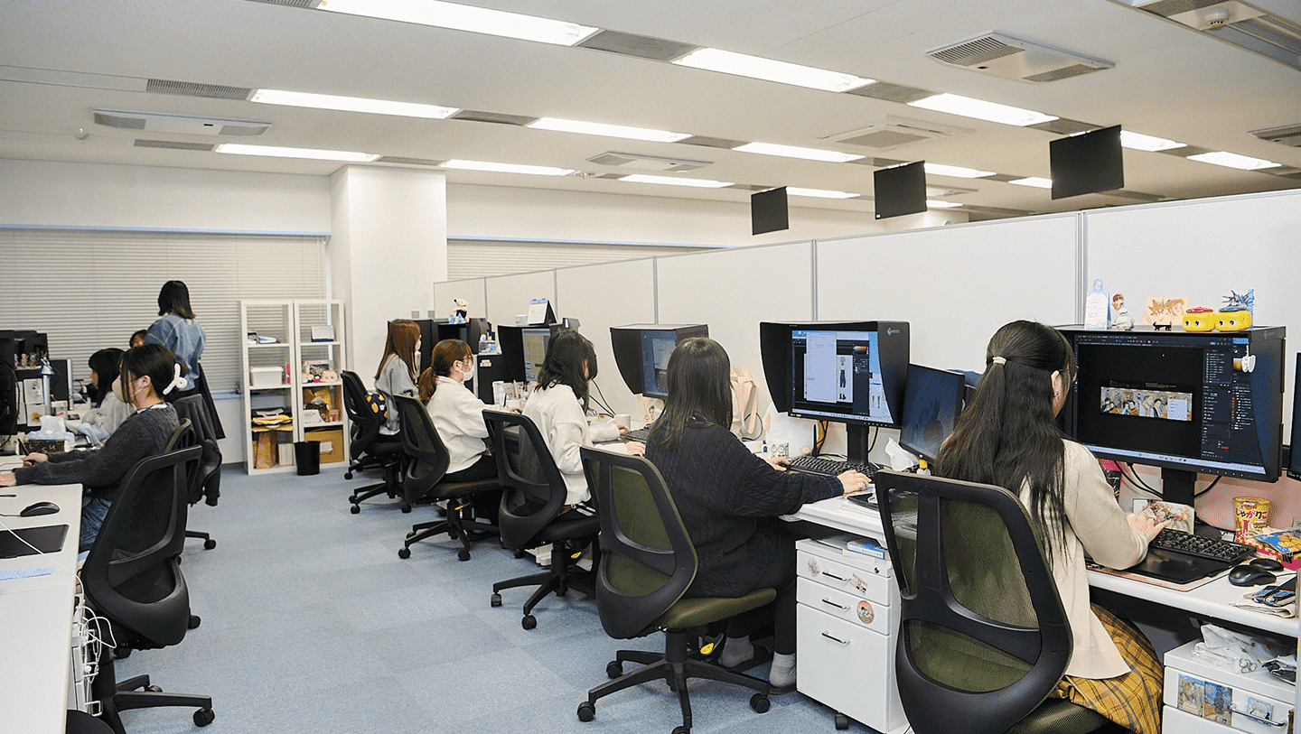 色彩設計を目指していただくのは、長期的なキャリア形成を重視しているからです。自社他社の作品問わず、TV・劇場・CM・MVなど幅広く作品を受注するため、様々なジャンルの作品を経験できます。